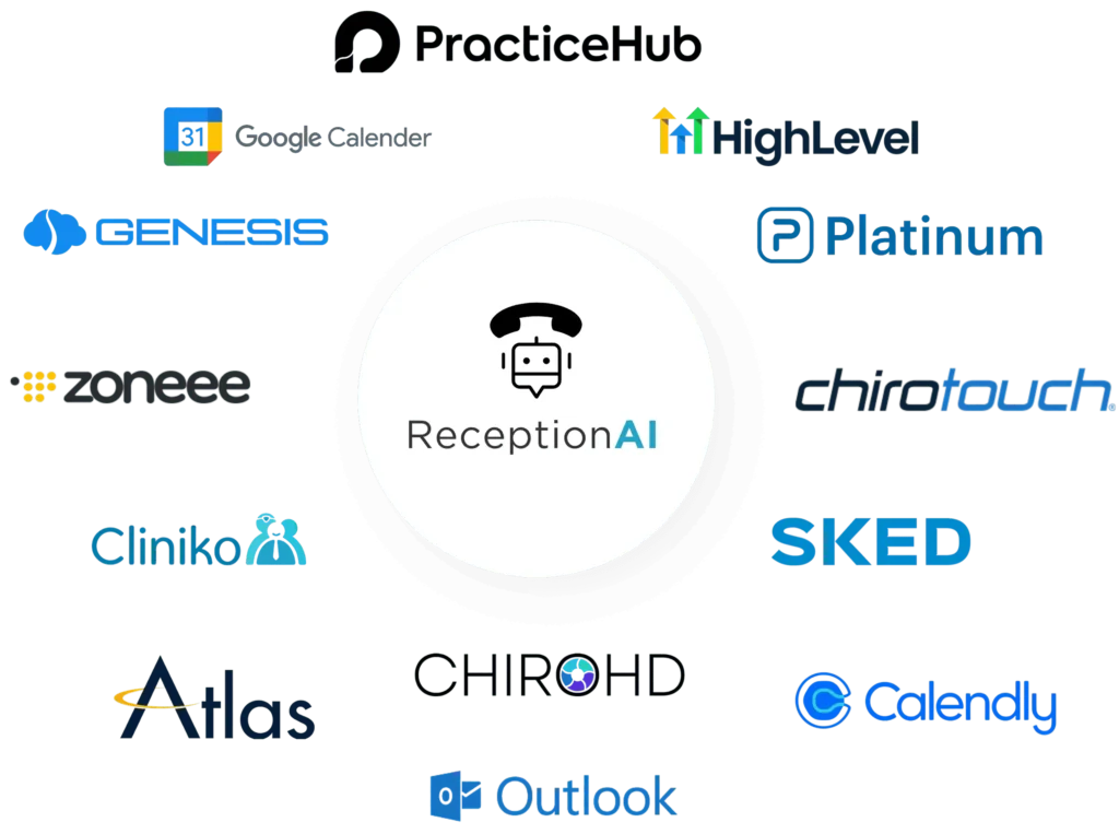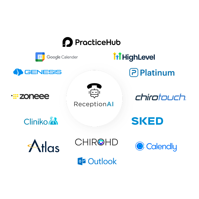 Reception AI connects effortlessly with your favorite EHR systems — from ChiroTouch to Genesis. Automatically sync every call, lead, and booking so you can spend less time on admin and more time growing your practice.