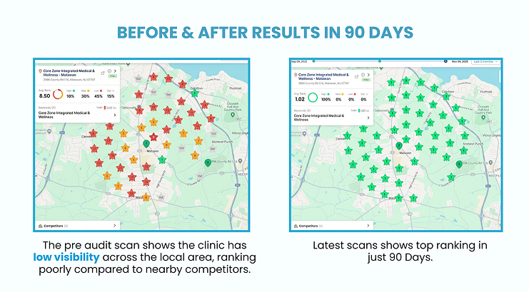 Local SEO is a long-term strategy. Most clinics start seeing improvements within 30–90 days, with continued growth over time as authority and trust build.